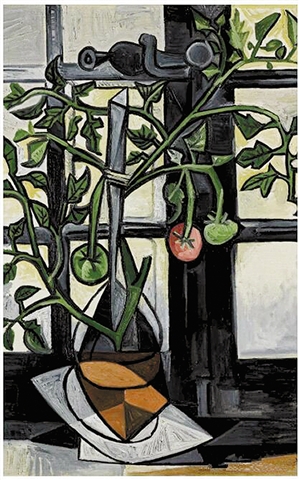1944年夏天,畢加索與情人瑪麗·特雷斯生活在還處于納粹占領(lǐng)中的法國巴黎,有一天,他為家中窗臺上的番茄植物畫了一幅靜物,既反映了當(dāng)時食物緊缺、人們不得不自己種植農(nóng)產(chǎn)品的現(xiàn)實(shí),同時還以富有生機(jī)的色彩和成熟果實(shí)的意向表達(dá)了人們強(qiáng)烈的意志力。那個時候,番茄是這座城市窗臺和陽臺上最常見的東西。