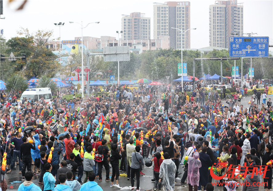 金羊網(wǎng)訊 記者湯銘明攝影報(bào)道:2017年2月27日,農(nóng)歷二月初二,“龍?zhí)ь^”的日子,東莞東坑鎮(zhèn)迎來(lái)了一個(gè)盛大而獨(dú)特的地方節(jié)日——二月初二“賣身節(jié)”。每年這個(gè)時(shí)候,東坑的居民都會(huì)舉行隆重的歡慶活動(dòng),當(dāng)中“射水狂歡”就是重頭戲!街坊們走上街頭,盡情地互相潑水,祝福的水花飛濺,場(chǎng)面熱鬧壯觀。