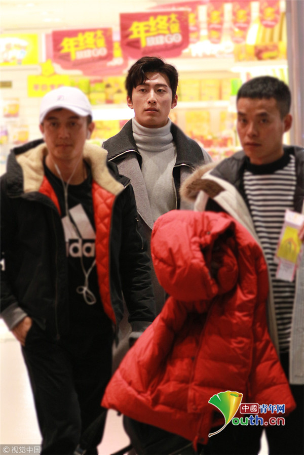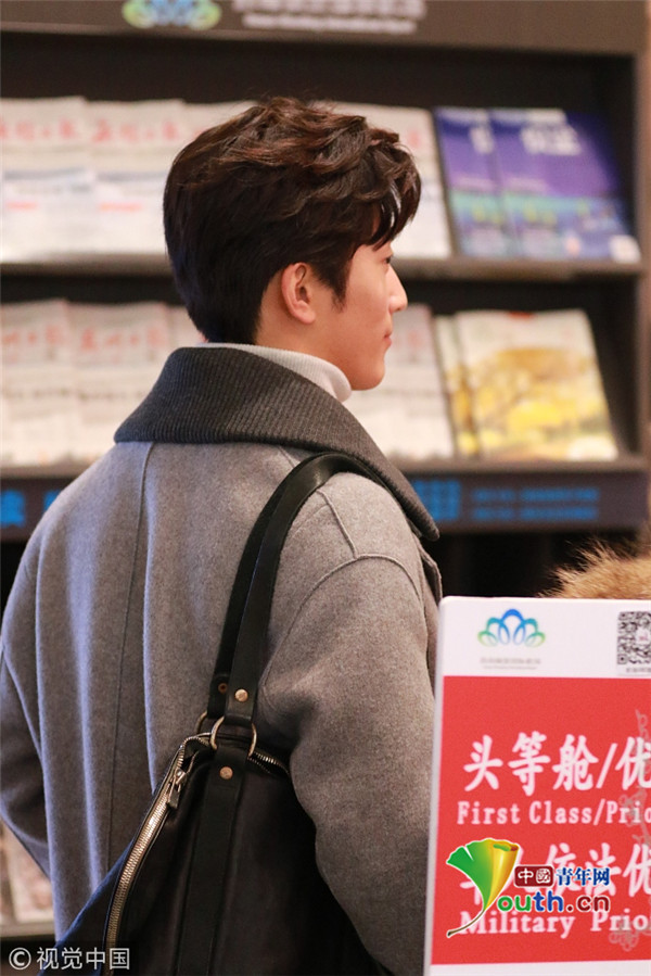 2017年12月11日,無錫,竇驍灰大衣帥氣現(xiàn)身無錫機(jī)場(chǎng),見攝影師拍圖隔著玻璃比V,暖男無疑了!