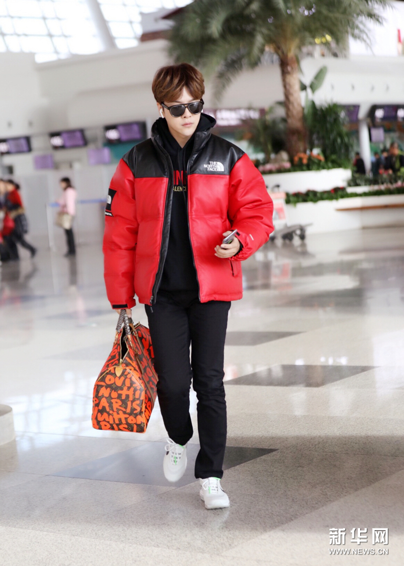 近日,徐海喬亮相機(jī)場,身穿黑色衛(wèi)衣搭配同色系休閑褲,外搭一件紅色羽絨服,保暖又個性。