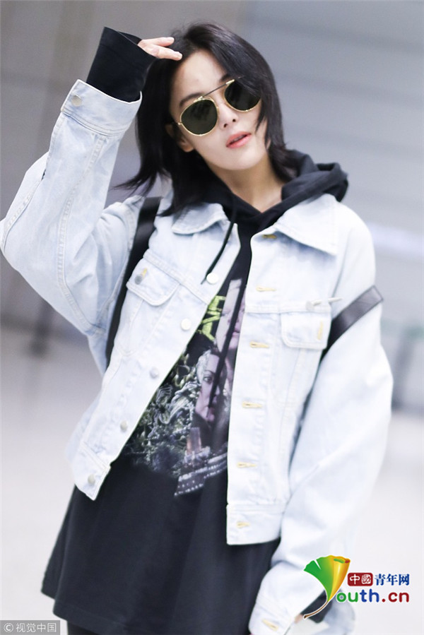 2017年12月13日,上海,張馨予現(xiàn)身機(jī)場(chǎng),穿連帽衣顯清爽,剪短發(fā)架黑超形似王菲,歪頭撩發(fā)又帥又酷。