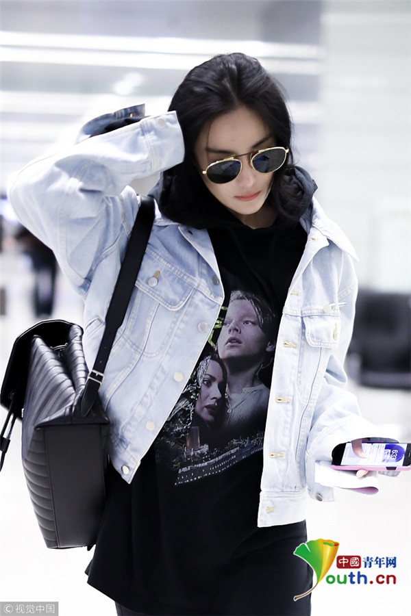 2017年12月13日,上海,張馨予現(xiàn)身機(jī)場,穿連帽衣顯清爽,剪短發(fā)架黑超形似王菲,歪頭撩發(fā)又帥又酷。