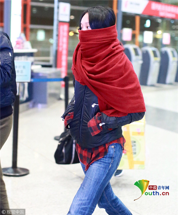 周迅演繹紅色圍巾的另類戴法 大步流星氣場(chǎng)滿分