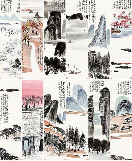 齊白石《山水十二條屏》創(chuàng)作于1925年,那一年齊白石62歲,正是他老年改變繪畫(huà)風(fēng)格的第四個(gè)年頭。他拋卻此前中國(guó)山水的程式,進(jìn)入“一洗凡塵萬(wàn)事空”的真山真水創(chuàng)作境界,這件作品幾乎囊括了齊白石所有山水畫(huà)題材,而且每屏上均題有自作詩(shī),鈐蓋齊白石常用印章,“詩(shī)書(shū)畫(huà)印”四絕俱全,堪稱其對(duì)山水創(chuàng)作升華后的集大成者?!?記者張 漫子)