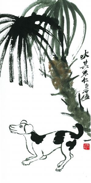 隨著上世紀(jì)九十年代國(guó)內(nèi)寵物熱的興起,狗越來(lái)越多地進(jìn)入大眾的日常生活,頻頻成為當(dāng)代畫家的表現(xiàn)對(duì)象。當(dāng)代大家黃永玉先生的水墨畫,具有諷刺與幽默的色彩,他畫的狗系列畫作,令人忍俊不禁。著名畫家史國(guó)良的西藏風(fēng)情畫中,我們也經(jīng)常能看到狗的身影,如他畫的《八角街上》,畫中靜臥一角的黑狗使整個(gè)畫面平添了許多生活氣息。古今畫狗的名家名作還有很多,實(shí)難一一列舉。狗的忠誠(chéng)、溫順是人類的最愛(ài),正緣于狗與人類的這種特殊關(guān)系,狗才成為畫家們百畫不厭的題材。