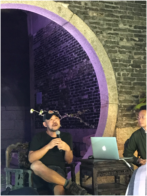 本次講座活動(dòng)是由藝術(shù)家、策展人楊勇主持,兩位特邀嘉賓分別是中山大學(xué)傳播與設(shè)計(jì)學(xué)院的教授馮原(同時(shí)擔(dān)任2011年深圳香港/城市雙城雙年展學(xué)術(shù)委員會(huì))以及現(xiàn)任Collect總監(jiān)伍常(曾為佳士得拍賣行美術(shù)學(xué)院亞洲課程主管)。在粵港澳大灣區(qū)的城市群背景下,主持人從大鵬所城的歷史及賴氏家族影響遺留下的民俗,講座嘉賓則分別從各自所處的城市—香港、廣州為著眼點(diǎn)展開(kāi)學(xué)術(shù)討論。