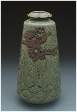 紅底玉縷耀瓷刻花飛龍寶塔尊