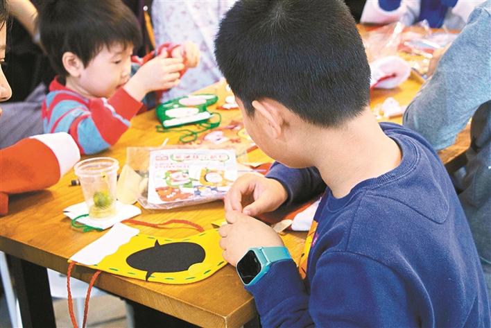 ▲活動現(xiàn)場,小朋友和父母一起做手工。