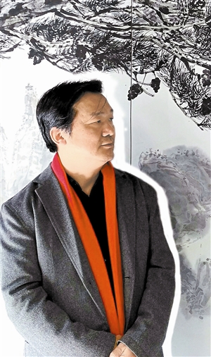 王和平說(shuō),指畫在美術(shù)大詞典里面能查得到的,起源于清初高其佩到高秉,再到“揚(yáng)州八怪”一直到近代。而指書(shū)就更早了,明末傅山是寫指書(shū)的,但是指書(shū)沒(méi)有指畫傳承得好,寫指書(shū)比畫指畫難度大。王和平說(shuō):“我寫指書(shū)的目的是為了畫畫,指畫最大的弊病就是不能畫長(zhǎng)線和塊面,所以我在指書(shū)方面學(xué)到的最大的經(jīng)驗(yàn)就是畫長(zhǎng)線。對(duì)于手指畫山水畫,原來(lái)的老先生畫山水都要用毛筆輔助上色的。我在研究的課題中,對(duì)我最有幫助的就是我畫指畫不再用毛筆上色,而是直接用手指、手背、手掌上色,而且上色比較均勻,最后畫面呈現(xiàn)的味道我覺(jué)得比毛筆上色的味道更濃、更有成像感?!?/p>