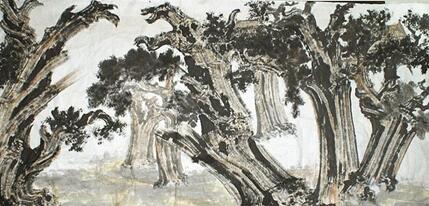 另一個(gè)他擅長的題材是古柏樹。1992年他去泰山采風(fēng)途中。山上的古柏樹生機(jī)勃發(fā),堅(jiān)韌不拔,給他帶來了一種震撼的力量。他當(dāng)時(shí)就想將這些古柏入畫,為古柏注入精神意義。從此,在孔府、孔林、古蜀道以及陜西等地都留下他觀察古柏的足跡。有評論家認(rèn)為,他的藝術(shù)作品不但在整體的構(gòu)圖上自然、清新和潤朗。而且在整體的布局上,疏密相間,虛實(shí)相融,用獨(dú)有藝術(shù)感覺構(gòu)建出了一個(gè)既蘊(yùn)含了詩情畫意,又張揚(yáng)了文化魅力和內(nèi)心情感的藝術(shù)空間。