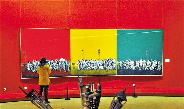 進入中國美術(shù)館正中圓廳,巨幅三聯(lián)作《時代之歌——闖·創(chuàng)·窗》格外令人矚目。廣東省美術(shù)家協(xié)會副主席、深圳市文聯(lián)專職副主席梁宇向記者表示,“我畫的是不同時期的普普通通的深圳建設(shè)者,正是他們鑄就了深圳發(fā)展的奇跡?!?/p>