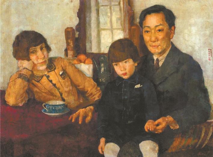 《楊仲子全家?!芬彩俏χ?,它以沉靜之態(tài)吸引觀眾駐足,忍不住與畫中人對視。這是徐悲鴻的佳作,畫的是好友楊仲子一家。楊仲子是中國最早留學(xué)歐洲研習西方音樂的先驅(qū),回國后傳授西方音樂,創(chuàng)建并推進中國音樂教育教學(xué)體制,倡導(dǎo)改進并推動民族音樂發(fā)展。這件創(chuàng)作于1928年冬天的作品,徐悲鴻畫出了楊仲子和妻子、孩子閑適的狀態(tài)。畫中三人神態(tài)各異,在藝術(shù)家的傳情畫筆下,觀眾似能看到他們恬淡表情之后的情緒。