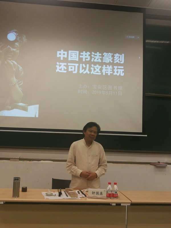 深圳新聞網(wǎng)5月11日訊(通訊員 孫善文)書法篆刻是優(yōu)秀的傳統(tǒng)文化,蘊含了中華千年文化的精粹。上午,著名書法篆刻家鐘國康在寶安圖書館舉辦專題講座,向到場的書法、篆刻愛好者分享了自己五十年來的書法、篆刻心得和經(jīng)驗,給大家?guī)砹艘粓鲇兴枷?、有?nèi)容、有美感的藝術(shù)盛宴,在場人員無不受益良多。