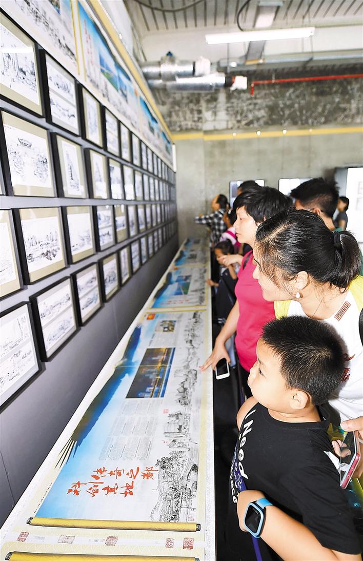 近日,第十五屆文博會配套文化活動——老鵬城人眼中的深圳精神《深圳千影繪畫攝影作品展》及《深圳千影畫卷》百名少年繪鵬城大型創(chuàng)作活動在深圳蛇口郵輪中心舉行,許多家長帶孩子來感受老鵬城人眼中的深圳精神。同時,現(xiàn)場展出的中國報業(yè)印刷史上罕見的《深圳商報》20連版新聞長卷,濃縮了深圳改革開放40周年經(jīng)歷,震撼觀眾。