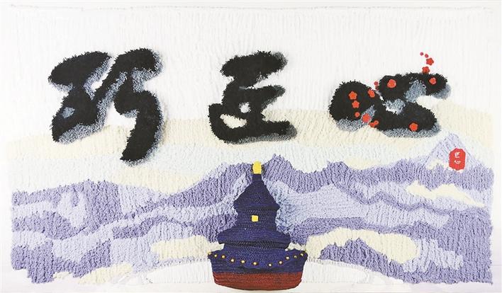 值得一提的是,巧匠心館展出作品偏重于表現(xiàn)“線”的視覺美感。大型纖維作品《巧匠心》吸引了許多觀展市民的眼光,該作品融合了鉤針、編織、植絨等多種技法,作品配色清新淡雅,色彩過渡自然,作品上呈現(xiàn)出來的天壇形象由3D打印而出,十分具有立體感。