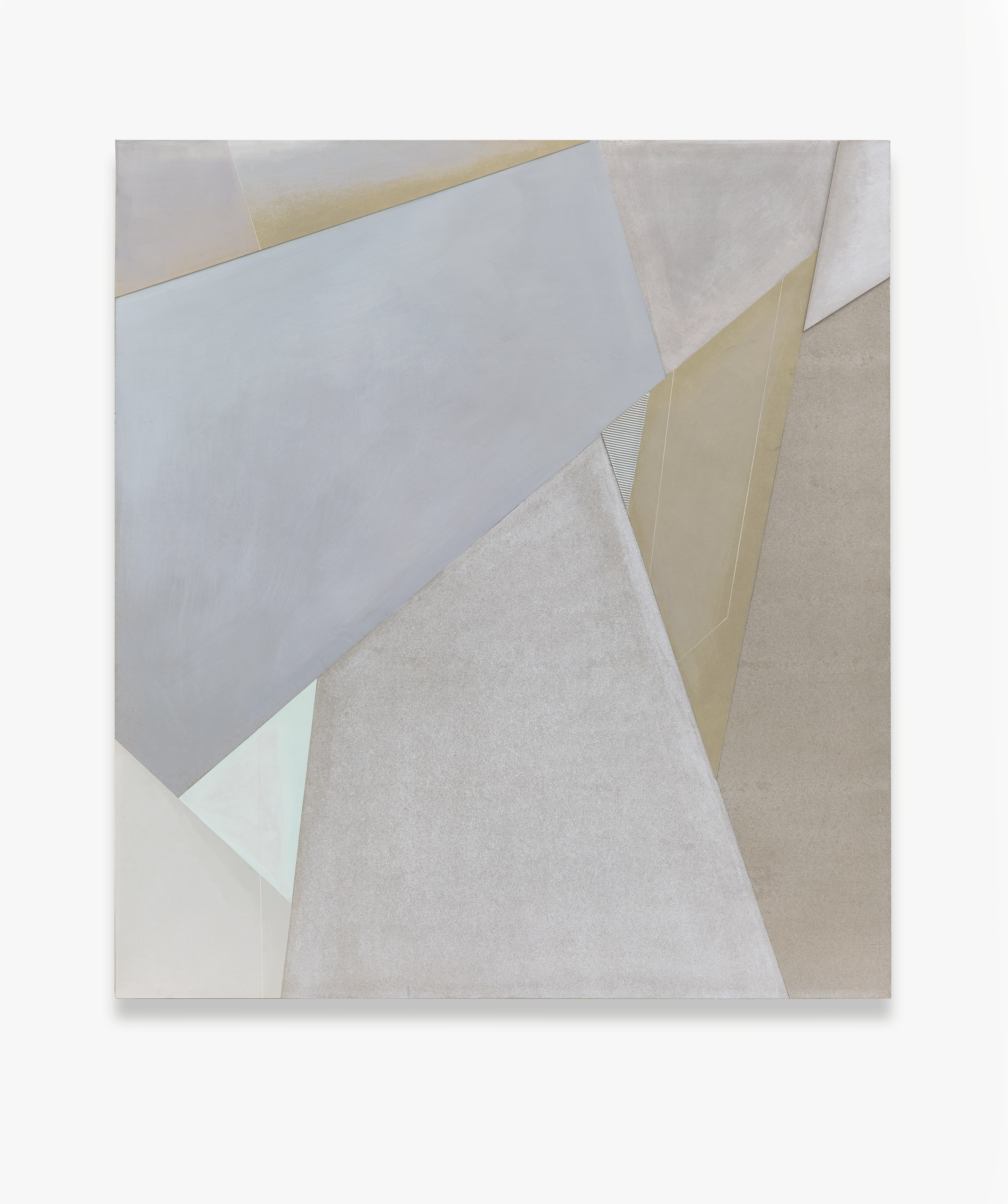 自2013年王豪開始以水泥作為個人創(chuàng)作媒介以來,三個系列“寂”、“樸”、“遠”并行展開?!凹拧焙汀皹恪睆娬{(diào)水泥作品的靜態(tài)特征,不論是單件作品還是多件組合作品,在水泥材料的細微變化與色塊搭配上,力求傳達出一種寧靜、樸拙的整體氣息;“樸”系列在形式上更為豐富,不僅嘗試使用斜線、三角形乃至圓形,還探索富于中國古典韻味的形式表達(例如對中國古代手卷的模擬);“遠”系列的名稱則來源于中國傳統(tǒng)山水繪畫所特有的透視技法“三遠”概念,這系列作品意圖通過畫面的動態(tài)表現(xiàn)打破二維空間限定,拓展平面繪畫的深度與廣度,從美學意境上與高遠、深遠、平遠相融合。
