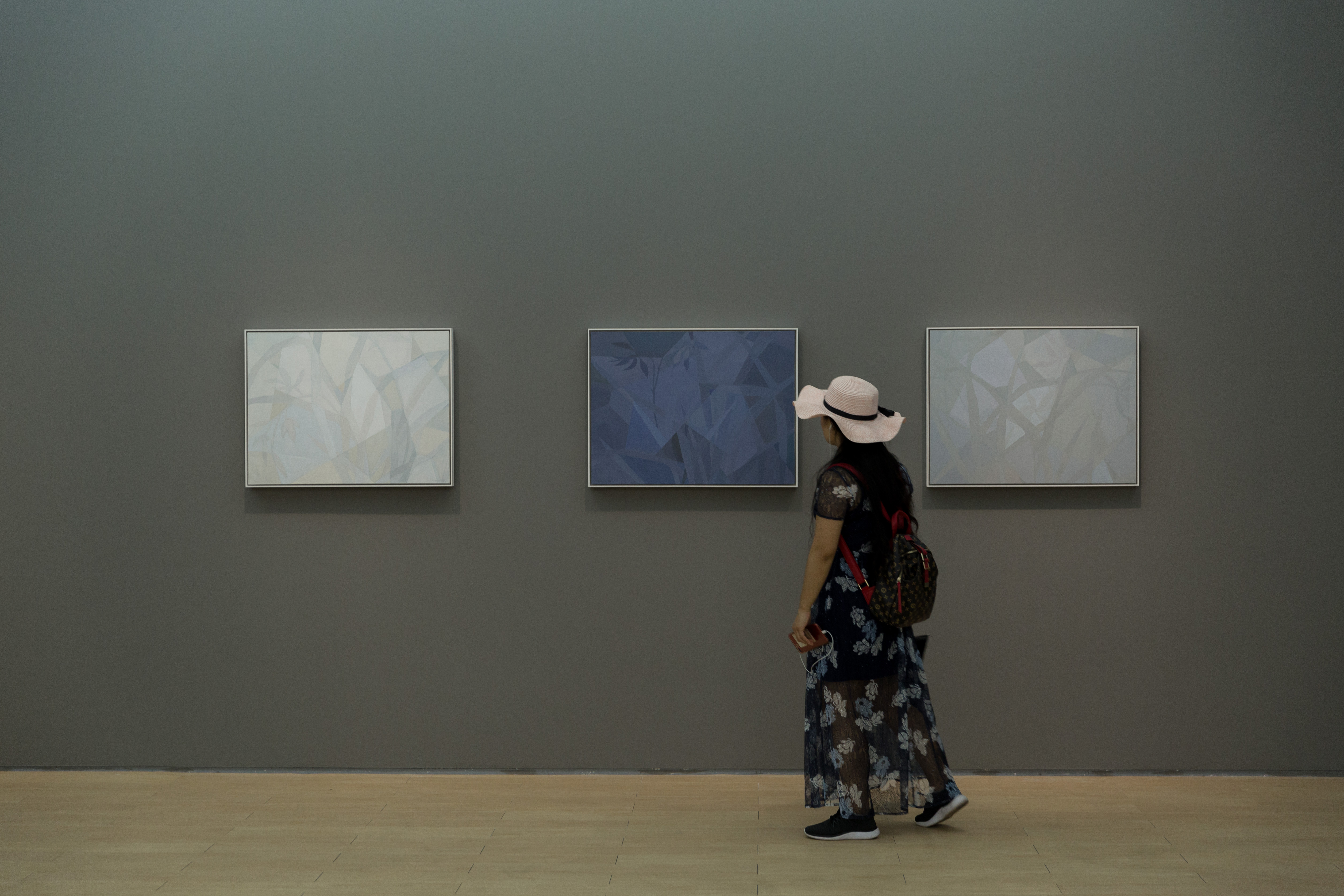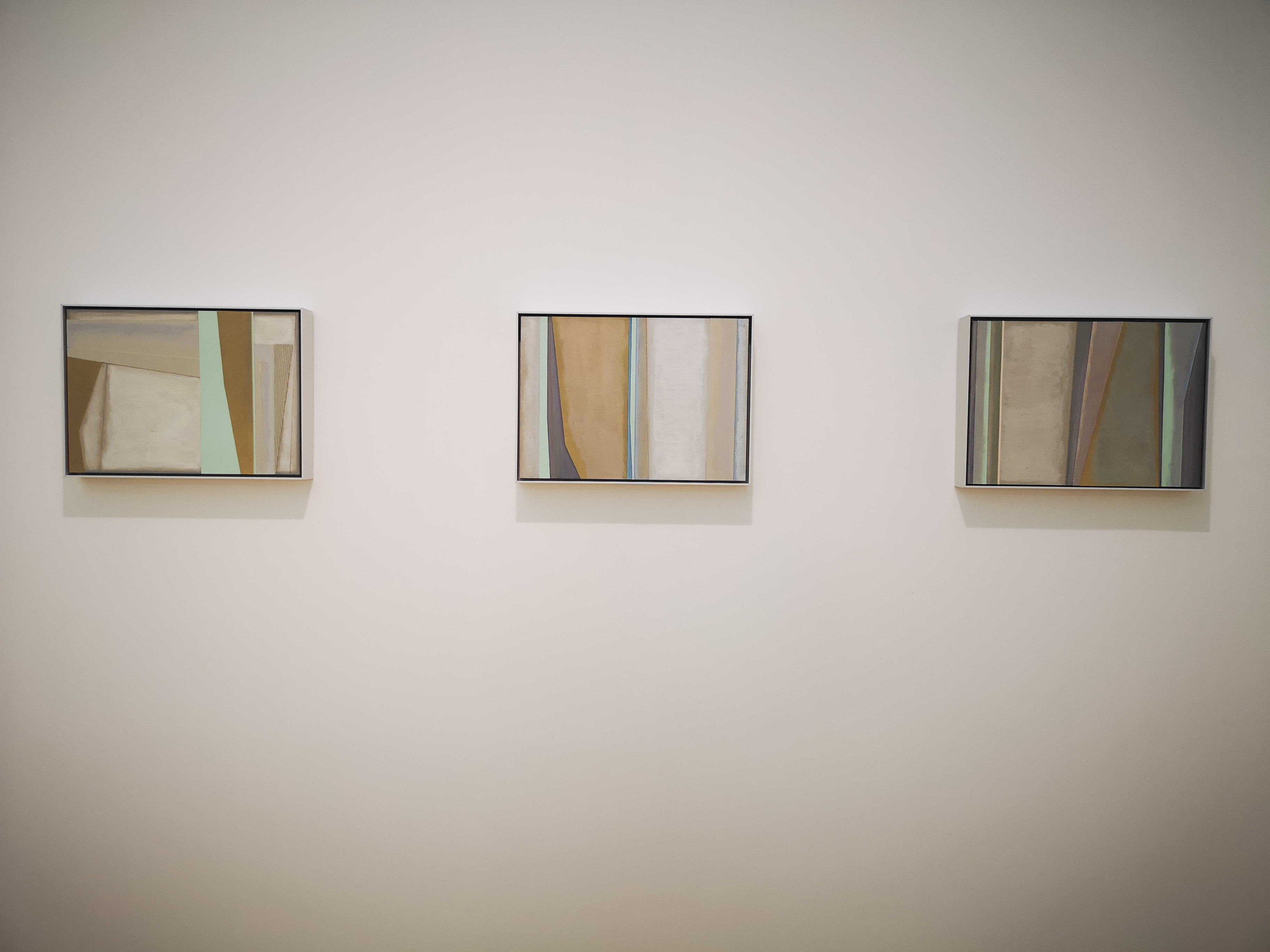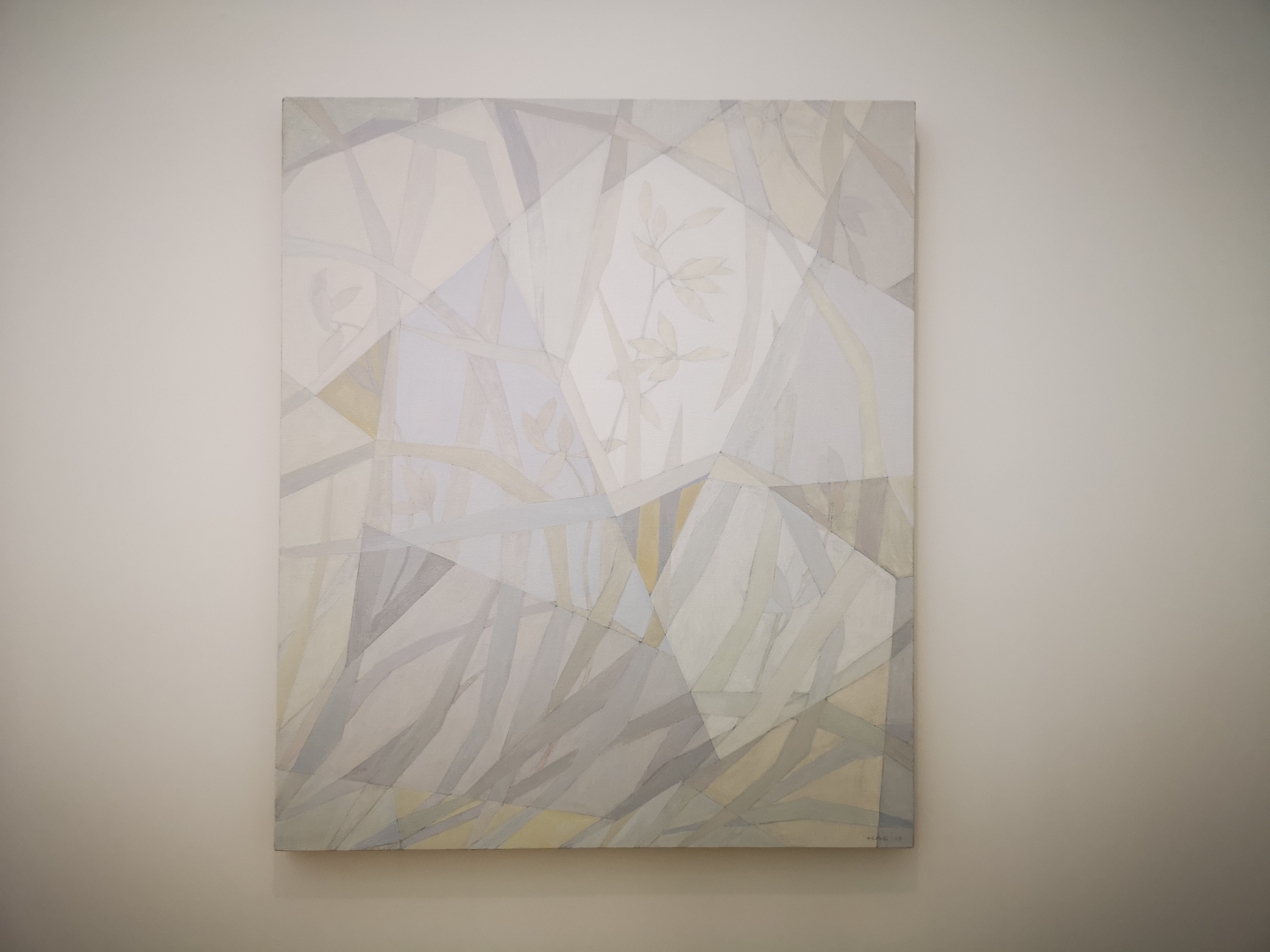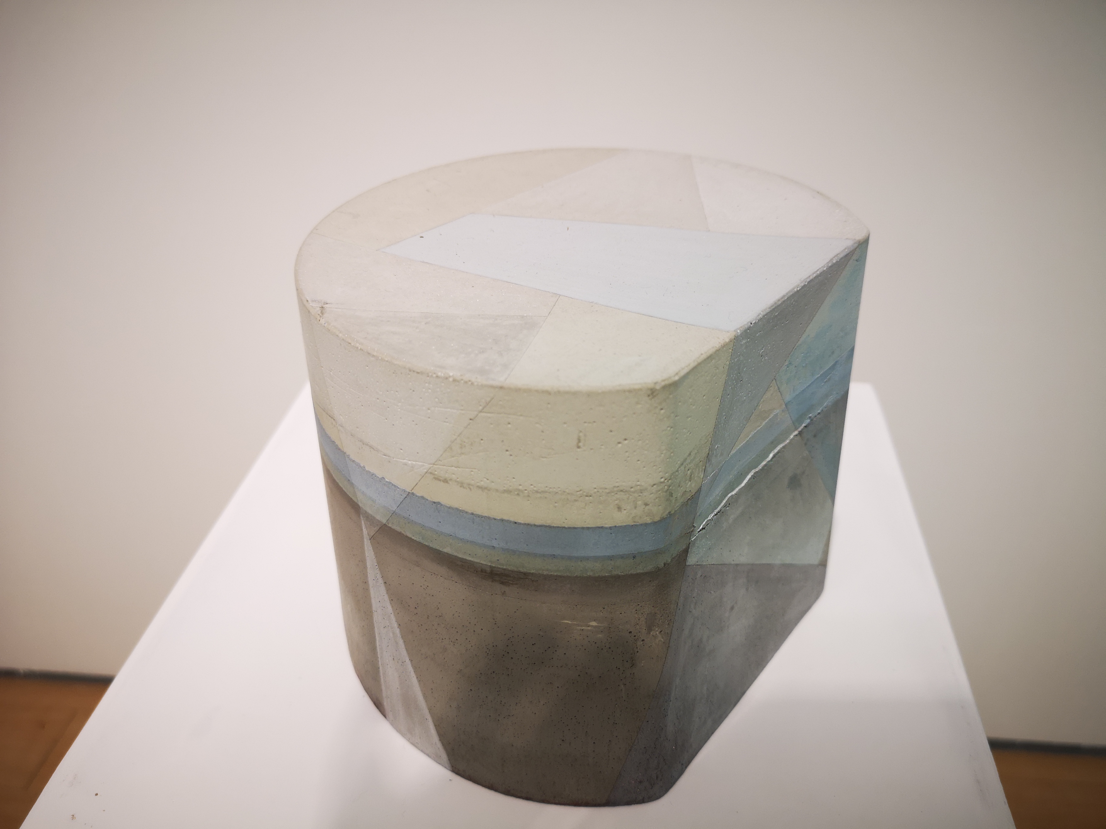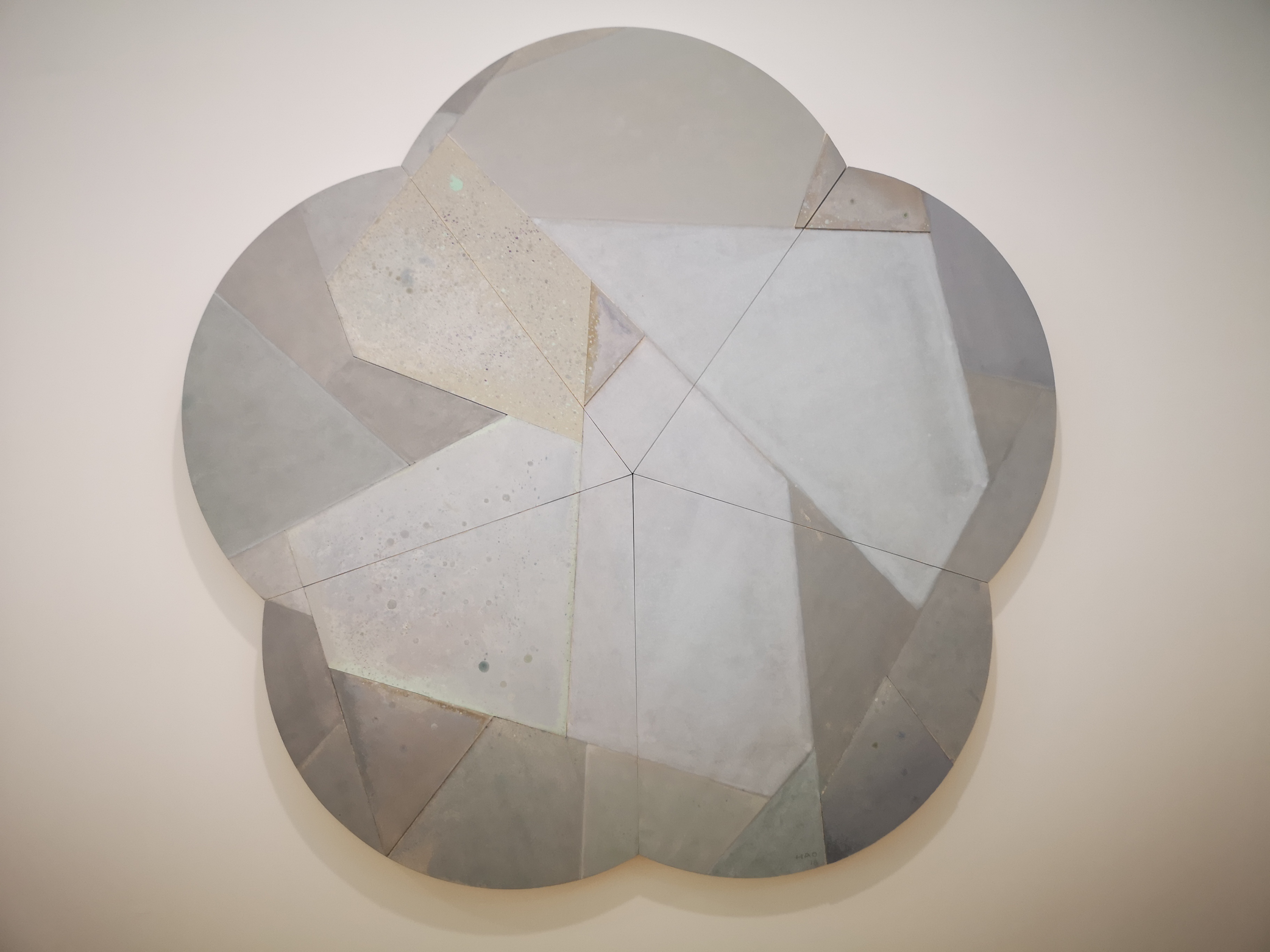 自2013年王豪開始以水泥作為個(gè)人創(chuàng)作媒介以來,三個(gè)系列“寂”、“樸”、“遠(yuǎn)”并行展開?!凹拧焙汀皹恪睆?qiáng)調(diào)水泥作品的靜態(tài)特征,不論是單件作品還是多件組合作品,在水泥材料的細(xì)微變化與色塊搭配上,力求傳達(dá)出一種寧靜、樸拙的整體氣息;“樸”系列在形式上更為豐富,不僅嘗試使用斜線、三角形乃至圓形,還探索富于中國古典韻味的形式表達(dá);“遠(yuǎn)”系列的名稱則來源于中國傳統(tǒng)山水繪畫所特有的透視技法“三遠(yuǎn)”概念,這系列作品意圖通過畫面的動(dòng)態(tài)表現(xiàn)打破二維空間限定,拓展平面繪畫的深度與廣度,從美學(xué)意境上與高遠(yuǎn)、深遠(yuǎn)、平遠(yuǎn)相融合。