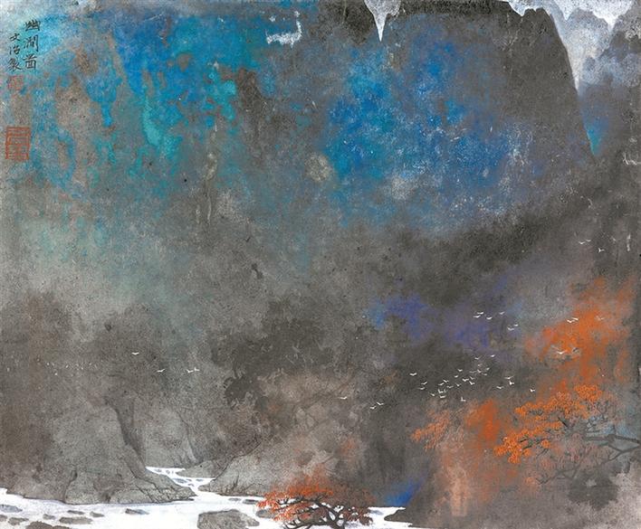 晚年,宋文治開始了以潑彩法入畫,在嚴(yán)謹(jǐn)?shù)姆ǘ戎腥谌肓嗽S多偶發(fā)性的生動效果,畫面從此氤氳彌漫、色彩斑斕,其個人風(fēng)格亦發(fā)生了較大變化,使“宋家山水”的面貌進(jìn)一步得到確立。此次展覽共展出宋文治所創(chuàng)作的四十多件精品,這些作品主要展現(xiàn)宋文治藝術(shù)從“中年出新”到“老年求變”的創(chuàng)作軌跡及藝術(shù)面貌。