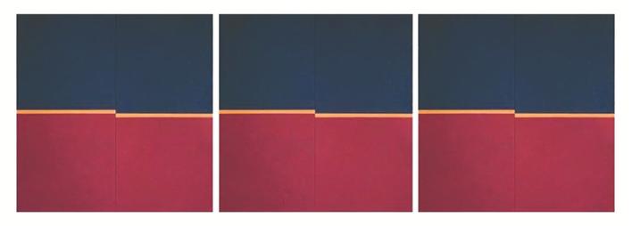 此次展覽梳理了熊文韻的藝術生涯,從中可見她對材料的大膽嘗試。尤為令人耳目一新的是她的抽象系列和巖彩畫。她的抽象系列作品從色彩和形態(tài)上來自藏族服飾“氆氌”,這種手工織造的紡織品在圖案上形成的視覺錯位具有抽象意味,