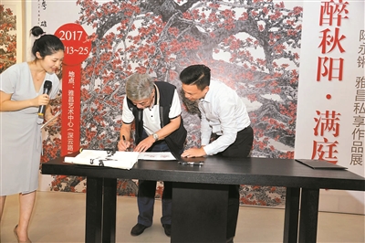 10月13日星期五下午,“酣醉秋陽·滿庭芳”陳永鏘私享作品展在雅昌藝術(shù)中心美術(shù)館正式開幕。