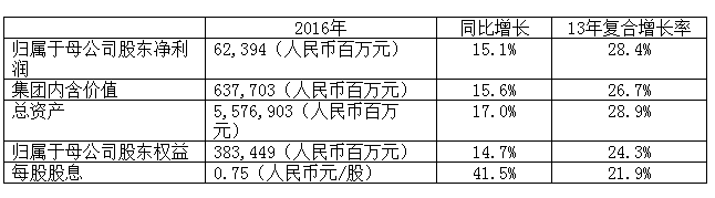 中國平安保險(集團)股份有限公司(以下簡稱“中國平安”、“平安”、“集團”或“公司”,股票代號:香港證券交易所2318,上海證券交易所601318)公布截至2016年12月31日全年業(yè)績。