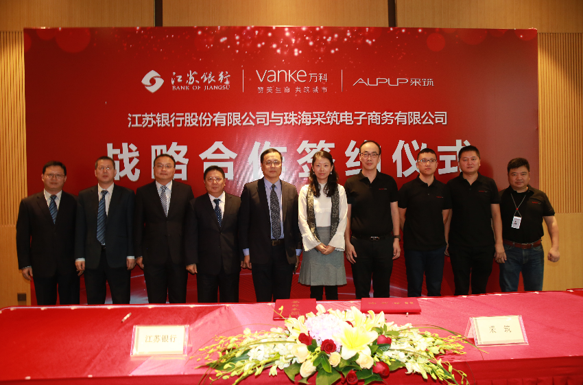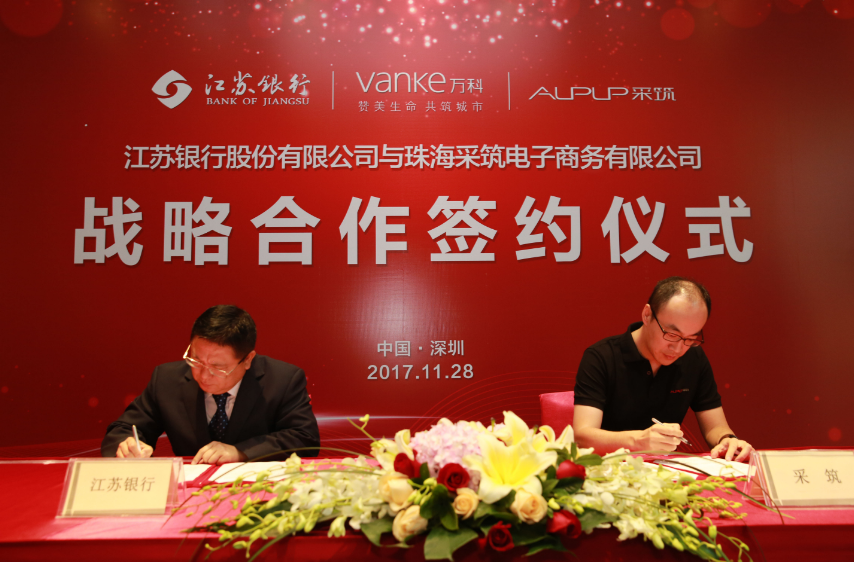 11月28日,采筑電商平臺(tái)發(fā)布會(huì)暨與江蘇銀行戰(zhàn)略合作協(xié)議簽約儀式在前海萬(wàn)科國(guó)際會(huì)議中心成功舉行。萬(wàn)科集團(tuán)副總裁王蘊(yùn)女士和江蘇銀行運(yùn)營(yíng)總監(jiān)趙輝先生受邀出席儀式并致辭,江蘇銀行行長(zhǎng)助理兼深圳分行行長(zhǎng)李敏與采筑電商平臺(tái)總經(jīng)理都軍代表雙方簽署戰(zhàn)略合作協(xié)議。總行公司業(yè)務(wù)部周愛(ài)國(guó)總經(jīng)理、深圳分行張慶光副行長(zhǎng)等一行出席發(fā)布會(huì)暨簽約儀式。
