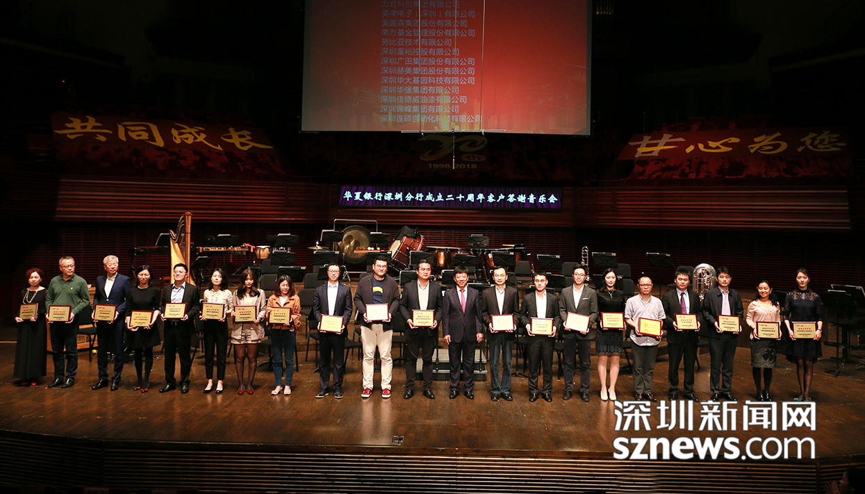 正如音樂聲中展現的波瀾畫卷,華夏銀行深圳分行從蹣跚起步到蓬勃發(fā)展,走過了一個不平凡的二十載。入深以來,華夏銀行始終秉承“共同成長、甘心為您”的服務理念,扎根深圳、服務深圳,努力為城市發(fā)展和市民提供優(yōu)質、安全的金融服務。