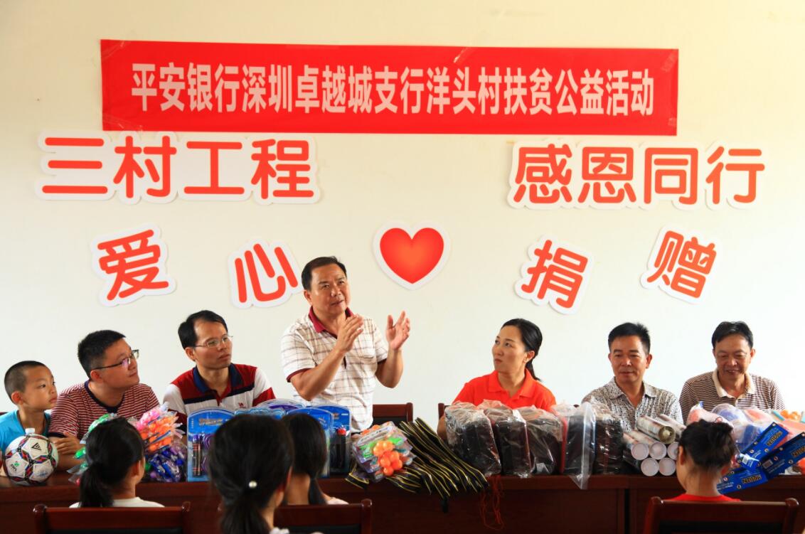 深圳新聞網(wǎng)訊 8月19日上午,為響應(yīng)平安集團(tuán)“三村工程”建設(shè)和平安銀行總、分行黨委關(guān)于扶貧工作的號召,踐行社會責(zé)任,平安銀行深圳卓越城支行客戶、員工一行25人前往該行對口扶貧村紫金縣龍窩鎮(zhèn)洋頭村開展了扶貧公益活動。