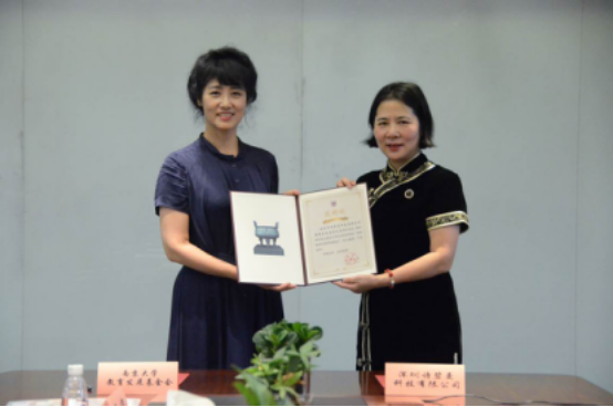 南京大學(xué)發(fā)展委員會(huì)主任張曉東向詩(shī)碧曼集團(tuán)董事長(zhǎng)朱建霞頒發(fā)感謝狀