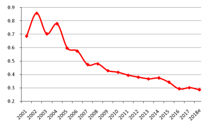 圖1我國貧富差距指數(shù)