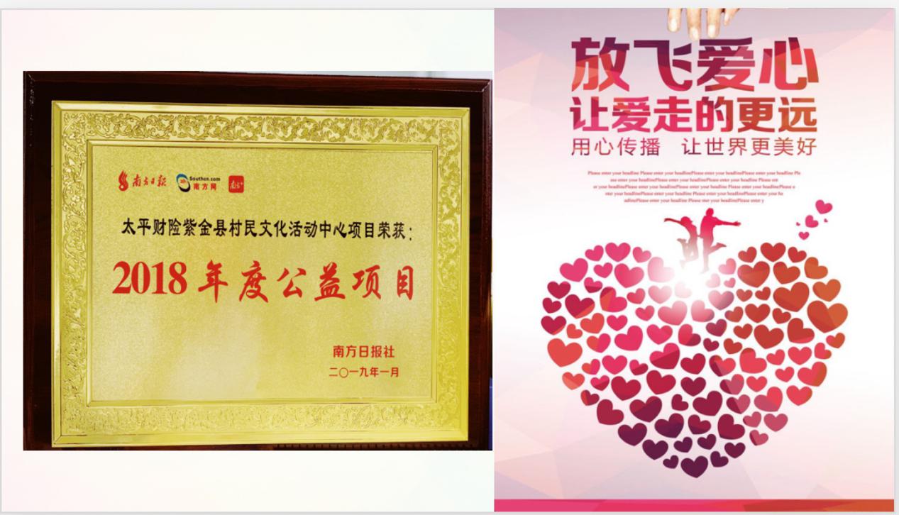 太平財產(chǎn)保險有限公司深圳分公司于2017年捐助紫金縣竹塘村村民文化中心工程,獲得了公益項目獎。太平財險負責人表示,在集團“共享太平”的旗幟下,深圳分公司將繼續(xù)服務(wù)實體經(jīng)濟,關(guān)注公益活動,助力鄉(xiāng)村振興,有力落實央企責任。