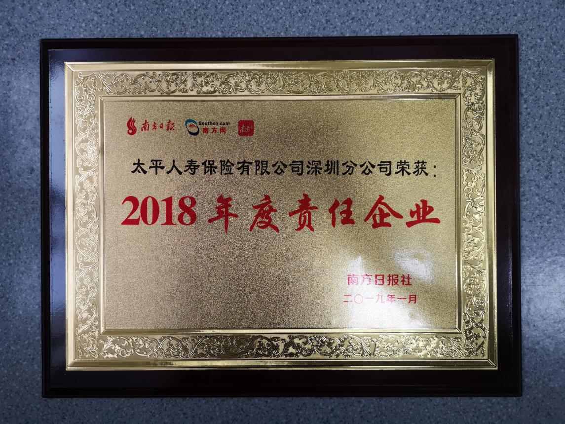 深圳新聞網(wǎng)訊 1月14日,由南方報業(yè)傳媒集團(tuán)主辦,深圳市慈善事業(yè)聯(lián)合會、深圳市慈善會、深圳市社會公益基金會、同心俱樂部、深圳市保險同業(yè)公會聯(lián)合主辦,南方日報珠三角全媒體新聞部承辦的2019南方日報深圳企業(yè)社會責(zé)任峰會在深圳召開。太平人壽深圳分公司從百余家企業(yè)中脫穎而出,榮獲“2018年度責(zé)任企業(yè)”榮譽獎項。