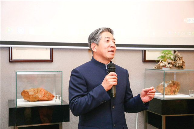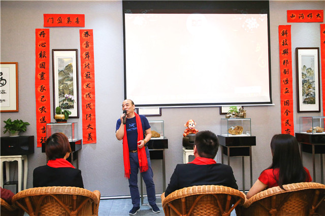 自古書(shū)法印章不分家,作品必須蓋印才算完整。本次活動(dòng)場(chǎng)地提供田黃博物館、希雍天石董事長(zhǎng)繆建生為到場(chǎng)嘉賓和校友,受邀分享田黃石科普知識(shí),介紹歷經(jīng)1.8億萬(wàn)年形成的田黃石種類及特點(diǎn)。 歡聚活動(dòng)上,田黃博物館特別挑選了一枚“溫、潤(rùn)、細(xì)、膩、凝、潔” 、印面方正碩大,雙龍雕刻立體,栩栩如生的昌化田黃貫斗雙龍印璽,捐贈(zèng)給文學(xué)社。 收到如此珍貴的禮物,求是文學(xué)社秘書(shū)長(zhǎng)樓蓉表示:非常感謝田黃博物館的支持與厚禮,后期將委托機(jī)構(gòu)對(duì)這塊印石義拍或義賣,所得將以求是文學(xué)社和田黃博物館名義,捐贈(zèng)給公益項(xiàng)目,會(huì)讓這一珍貴的禮物,發(fā)揮更多的社會(huì)價(jià)值。