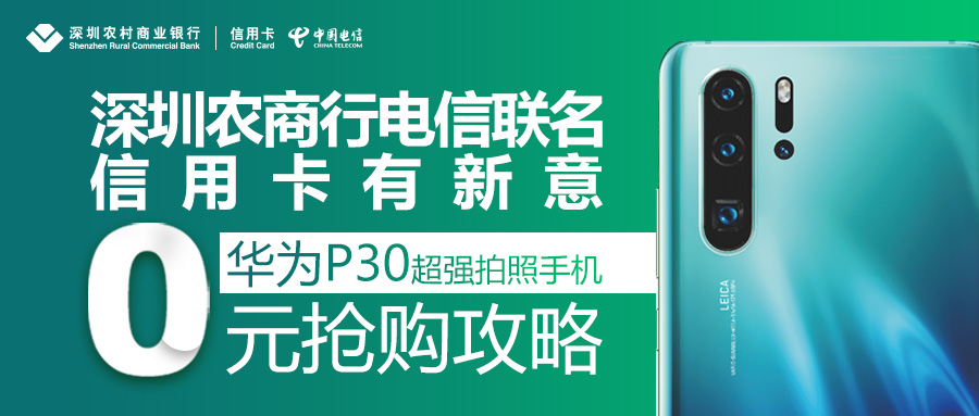 此次深圳農(nóng)商行與深圳電信開展的“零元搶購攻略”活動,就是針對眼下炙手可熱的華為P30系列手機??蛻艮k理電信199元暢享套餐凍結(jié)信用卡額度4320元,持續(xù)凍結(jié)38個月,即可0元購買P30(8GB+128GB)。