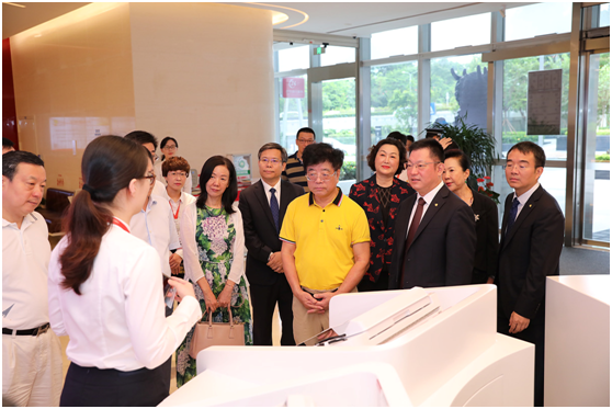在華夏銀行深圳分行黨委書記、行長陳傳龍的陪同下,深商聯(lián)會長、執(zhí)行會長及各企業(yè)家來到分行營業(yè)部,考察調研智慧網點建設情況,在工作人員講解下,現場觀摩體驗了“人臉識別+指靜脈”智能機具應用,對營業(yè)網點智能化、專業(yè)化服務水平給予肯定。同時,參觀黨員之家、職工之家、青年之家,現場感受華夏銀行深圳分行企業(yè)文化建設。隨后,雙方高管進行了親切座談。