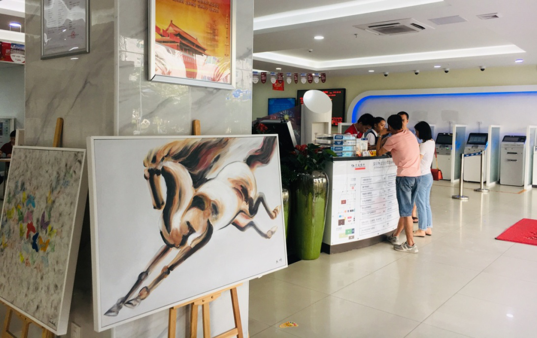 走進(jìn)交通銀行深圳布吉支行,您的目光一定首先會被陳列廳堂的油畫作品吸引。這些油畫是布吉支行用于精準(zhǔn)扶貧的義賣作品,用來幫助河源市紫金縣禮坑村許大爺家庭。支行精準(zhǔn)扶貧工作已經(jīng)進(jìn)入第三個(gè)年頭,2019年6月,支行利用啟動(dòng)基金向畫商重新購置了油畫作品。新添置的油畫作品擺放于支行大廳,結(jié)合總行廳堂一體化改造,支行廳堂呈現(xiàn)出全新面貌。