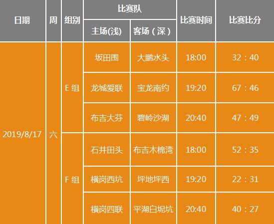 東部賽區(qū)當(dāng)晚共有6場精彩比賽,2個場地同時開賽。當(dāng)中大鵬水頭和坂田圍的比賽異常激烈,經(jīng)過六十分鐘的的激烈鏖戰(zhàn),大鵬水頭隊以40比32獲勝。各支隊伍懷著必勝的信念,器宇軒昂,敢打敢拼。比賽最后,大鵬水頭、龍城愛聯(lián)、碧嶺沙湖、石井田頭及坪地坪西、橫崗四聯(lián)隊6支隊伍獲得東部賽區(qū)首戰(zhàn)勝出。