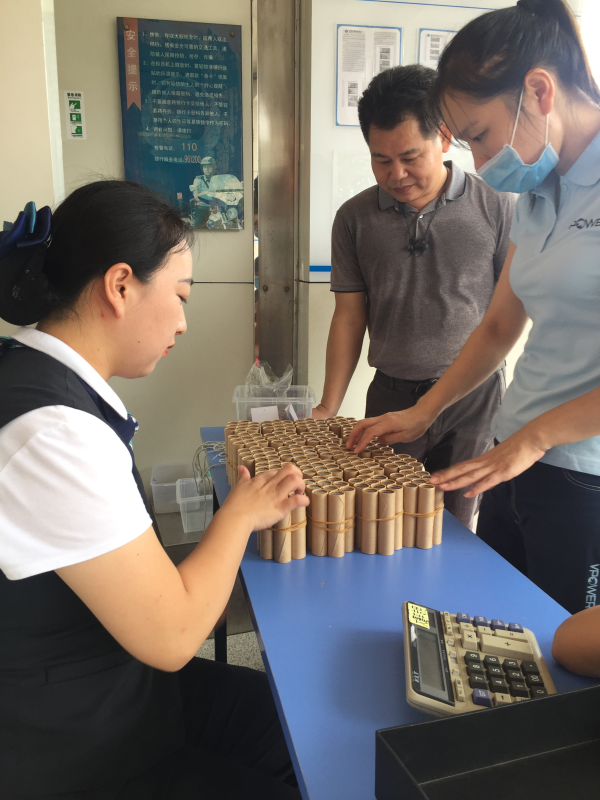 活動(dòng)當(dāng)天大雨滂沱,但社區(qū)居民兌換熱情依舊不減,經(jīng)過10個(gè)小時(shí)的清點(diǎn)工作,本次共回籠硬幣121802枚,其中1角66200枚,5角7084枚,1元48518枚,合計(jì)人民幣58680元。在兌換硬幣的同時(shí),深圳農(nóng)村商業(yè)銀行工作人員向周邊居民普及現(xiàn)金基礎(chǔ)知識(shí)和防范風(fēng)險(xiǎn)的技能。