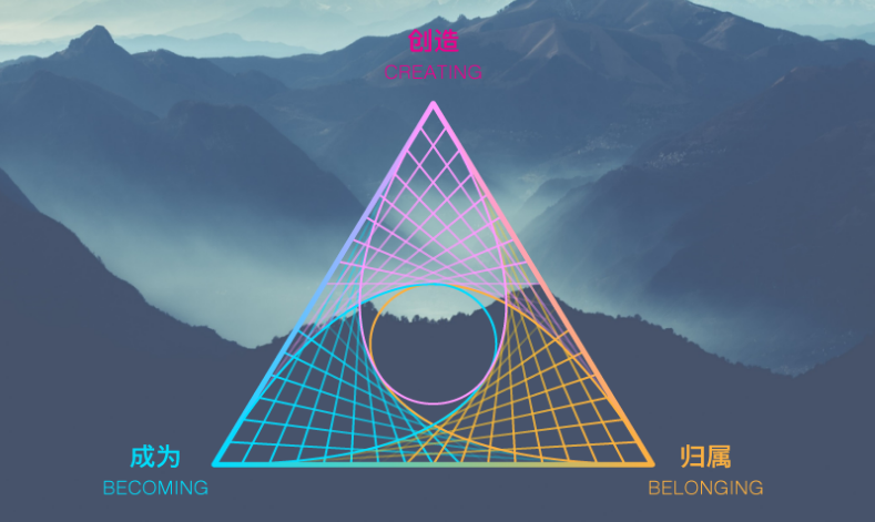 在這兩個(gè)維度的基礎(chǔ)上,陳瑋教授增加了Creating“創(chuàng)造”這個(gè)維度。Creating“創(chuàng)造”,是我給這個(gè)世界留下的精神和物質(zhì)遺產(chǎn),世界因你而變。在成為和歸屬完成之后,人生的使命是創(chuàng)造,是我們給這個(gè)世界帶來的更新與升級。當(dāng)我們問,未來會是什么樣?我們真正要問的是:我,將為這個(gè)世界創(chuàng)造什么?