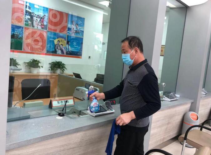 每天正式營業(yè)前,網(wǎng)點對營業(yè)大廳、自助設(shè)備、柜臺等進(jìn)行360°全面無死角消毒。營業(yè)期間,每天確保廳堂環(huán)境每兩小時、自助機(jī)具每小時的頻率做好消毒工作,營造安全的業(yè)務(wù)辦理環(huán)境供客戶安心辦理。