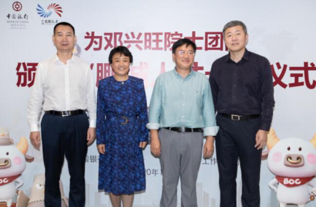 深圳新聞網(wǎng)·見圳客戶端2020年11月8日訊 昨日,深圳市光明區(qū)委常委、組織部部長繩萬青,中國銀行深圳市分行副行長韓竹代表深圳市光明區(qū)人才辦和中國銀行深圳市分行,為生物學(xué)家、美國國家科學(xué)院院士鄧興旺及部分團(tuán)隊成員頒發(fā)了“中銀鵬城人才卡”鉆石卡,這是全市范圍內(nèi)首張向在深院士發(fā)放的“中銀鵬城人才卡”,標(biāo)志著這張由光明區(qū)人才辦和深圳中行共同策劃推出的人才卡實現(xiàn)了市級認(rèn)定的各層級人才全覆蓋。鄧興旺院士是深圳市杰出人才獲得者、深圳市作物分子設(shè)計育種研究院院長、深圳興旺生物種業(yè)有限公司董事長,他帶領(lǐng)團(tuán)隊2010年到深圳創(chuàng)業(yè),多年來在水稻領(lǐng)域取得兩項重大技術(shù)突破,其中“潔田模式”大規(guī)模市場示范面積達(dá)到50萬畝,有效加快了中國農(nóng)業(yè)的輕簡化、現(xiàn)代化步伐。