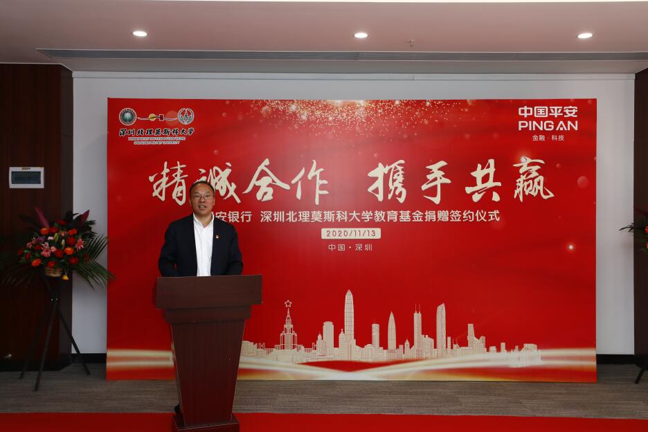 此外,朱迪儉書(shū)記介紹了基金會(huì)的成立情況,感謝深圳市政府、深圳市教育局、民政局和各相關(guān)部門(mén)、企業(yè)對(duì)基金會(huì)成立給予的關(guān)心與支持。他表示,學(xué)校在辦學(xué)三方的通力協(xié)作和社會(huì)各界的大力支持下,各項(xiàng)事業(yè)得到了快速發(fā)展。希望通過(guò)基金會(huì)加強(qiáng)學(xué)校與社會(huì)各界的廣泛聯(lián)系與合作,增強(qiáng)學(xué)校辦學(xué)活力,提高辦學(xué)質(zhì)量和效益,更好服務(wù)“一帶一路”國(guó)家戰(zhàn)略及“雙區(qū)”經(jīng)濟(jì)和社會(huì)發(fā)展,實(shí)現(xiàn)多方共贏(yíng)。同時(shí)朱迪儉書(shū)記代表學(xué)校向平安銀行此次設(shè)立教育專(zhuān)項(xiàng)基金,支持深圳北理莫斯科大學(xué)教育事業(yè)發(fā)展表示感謝。他希望雙方以此為契機(jī),不斷擴(kuò)大合作和交流,攜手并進(jìn)、共創(chuàng)輝煌,共譜合作新篇章。隨后,雙方舉行了捐贈(zèng)簽約儀式。