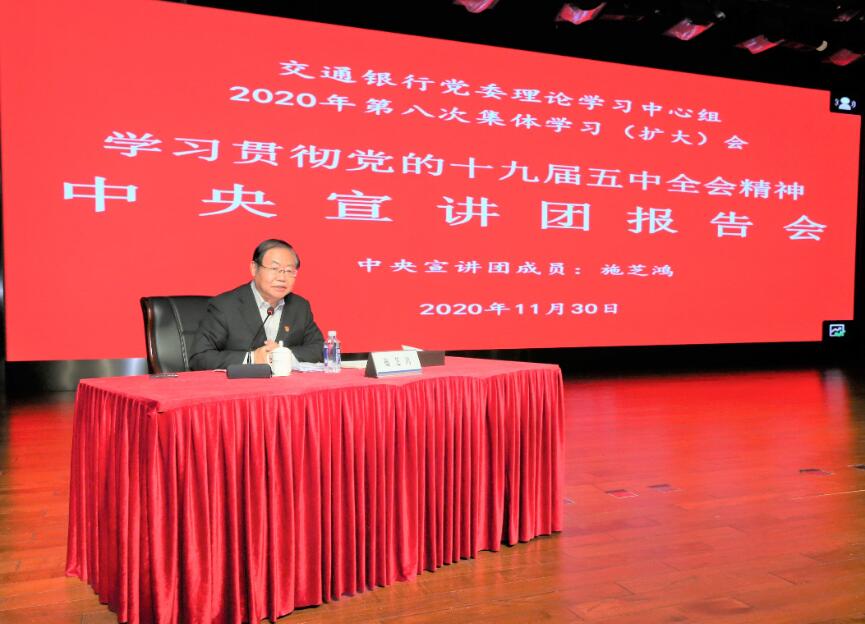 深圳新聞網(wǎng)·見圳客戶端2020年12月1日訊 昨日,交通銀行舉行學(xué)習(xí)貫徹黨的十九屆五中全會精神中央宣講團報告會暨黨委理論學(xué)習(xí)中心組第八次集體學(xué)習(xí)(擴大)會。中央宣講團成員、中央政策研究室原副主任施芝鴻作宣講報告,黨委書記、董事長任德奇主持報告會。