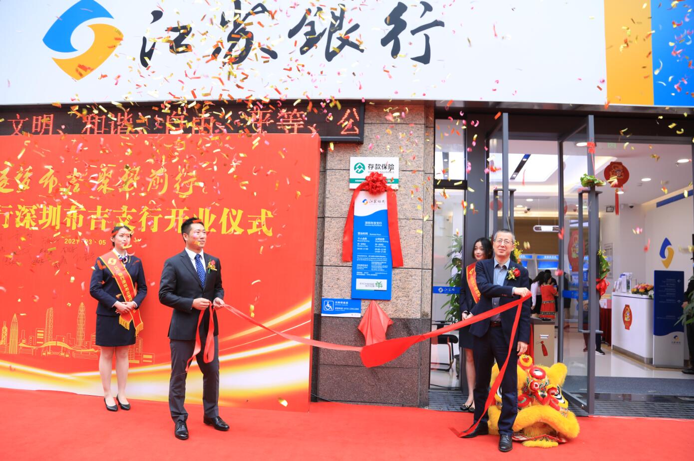 深圳新聞網(wǎng)·見圳客戶端2021年3月5日訊 3月5日,江蘇銀行深圳布吉支行開業(yè)儀式圓滿舉行,龍崗區(qū)金融辦相關(guān)領(lǐng)導(dǎo)、各界企業(yè)嘉賓出席開業(yè)儀式。江蘇銀行深圳分行副行長張慶光與布吉支行負(fù)責(zé)人共同為支行揭牌,隨著紅綢的落下,宣告了布吉支行正式揭牌開業(yè),揭開了江蘇銀行深圳布吉支行“逐夢布吉,聚勢前行”的序幕。
