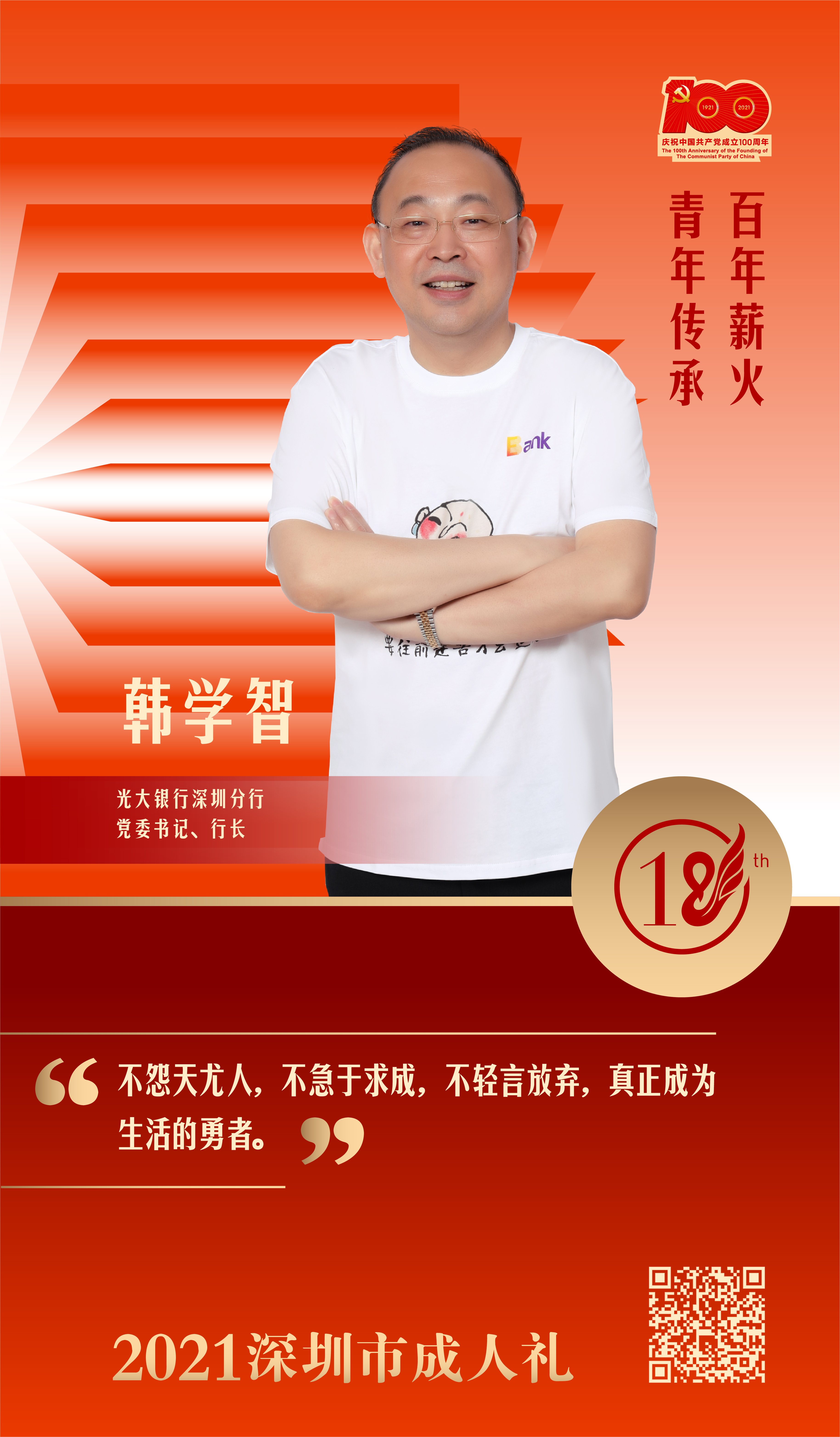 深圳新聞網(wǎng)·見圳客戶端2021年5月10日訊“以‘三勤四慎’提升青年生活幸福感,希望年輕人能勤于思考,善于思考,學(xué)會(huì)從思考中發(fā)現(xiàn)問題,解決問題,這樣才能取得更快的進(jìn)步?!痹?月7日拉開序幕的“百年薪火,青年傳承”2021深圳市成人禮系列活動(dòng)中,光大銀行深圳分行黨委書記、行長韓學(xué)智作為青春代表,通過網(wǎng)絡(luò)渠道,為青年們送上飽含激情和期待的寄語“明信片”。