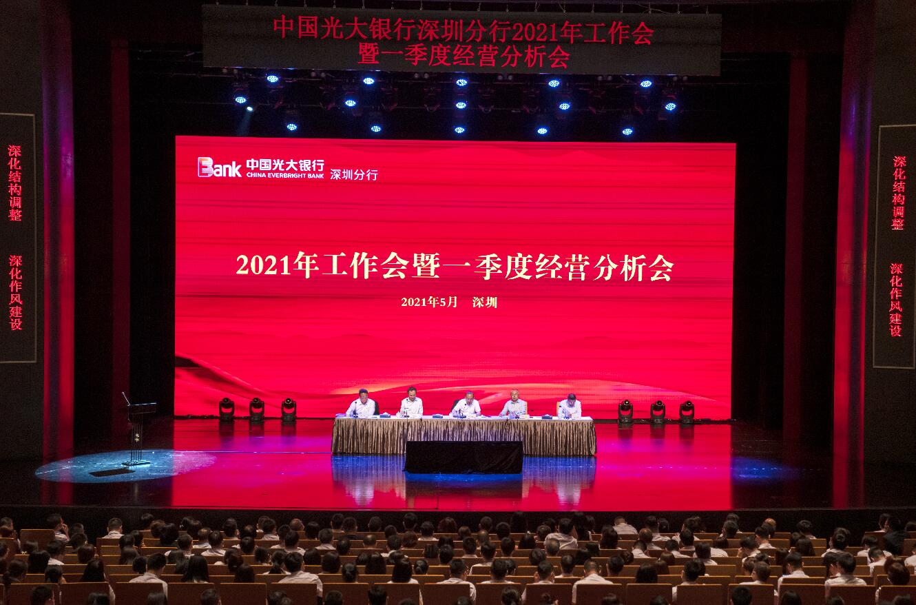 深圳新聞網(wǎng)·見圳客戶端2021年5月16日訊 今日,中國光大銀行深圳分行召開2021年工作會暨一季度經(jīng)營分析會。會上,分行黨委書記、行長韓學(xué)智深入傳達(dá)貫徹集團(tuán)、總行一季度工作會議精神,總結(jié)回顧了分行一季度經(jīng)營管理情況,深刻分析了當(dāng)前分行面臨的困難局面和存在的問題,在此基礎(chǔ)上,提出了分行2021年“深化改革力度深化風(fēng)險管理深化結(jié)構(gòu)調(diào)整深化作風(fēng)建設(shè)”的工作方針,部署了全年經(jīng)營管理和黨建重點工作任務(wù)。