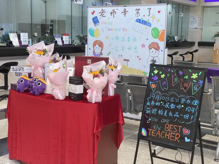 深圳新聞網(wǎng)2021年9月10日訊 (記者 朱琳 通訊員 樓蓉 沈婷)金秋九月,秋高氣爽,為迎接第37個(gè)教師節(jié),深圳分行開展“感恩教師節(jié)”系列活動,部分網(wǎng)點(diǎn)通過教師節(jié)專屬活動,為廣大教師客戶送上了節(jié)日的鮮花。9月10日,在深圳分行營業(yè)部辦理業(yè)務(wù)的人民教師均可獲贈精美禮品一份。