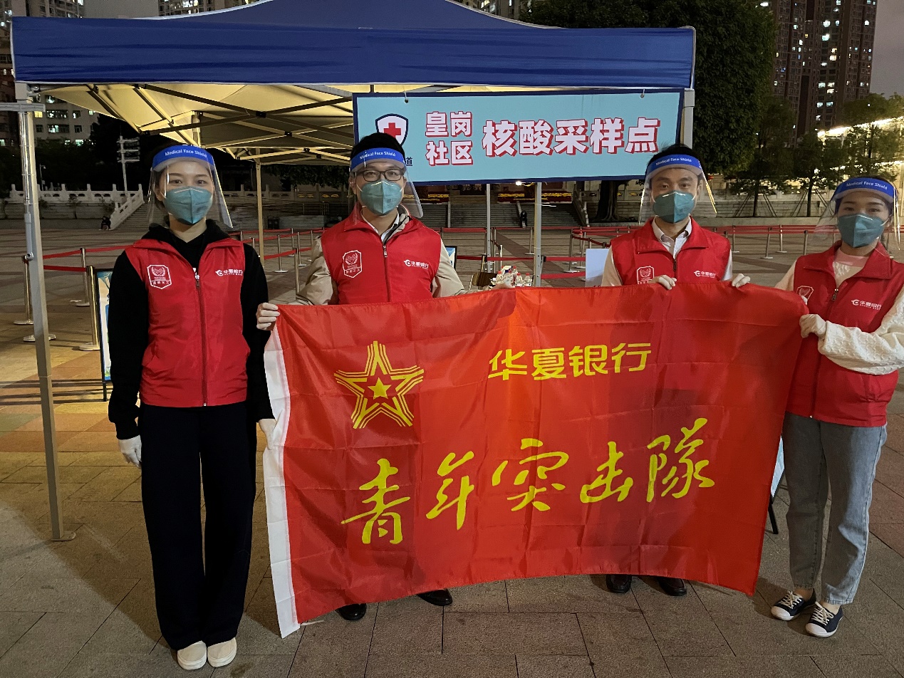 華夏銀行深圳分行在做好金融服務(wù)的同時(shí),迅速響應(yīng)號召,第一時(shí)間發(fā)出招募令,號召全行青年志愿者踴躍參與疫情防控。來自分支行的黨員、青年團(tuán)員迅速集結(jié),奔赴到疫情防控一線,在做好安全防護(hù)的基礎(chǔ)上,深入福田街道皇崗文化廣場、高發(fā)城馳廣場核酸采集點(diǎn),協(xié)助防疫工作組維護(hù)現(xiàn)場秩序、身份信息登記等志愿服務(wù)工作,全面助力提升核酸檢測效率。對于一些帶小孩或者不熟悉掃碼程序的群眾,志愿者們熱情耐心給予指導(dǎo),確保核酸采集點(diǎn)保持良好秩序。