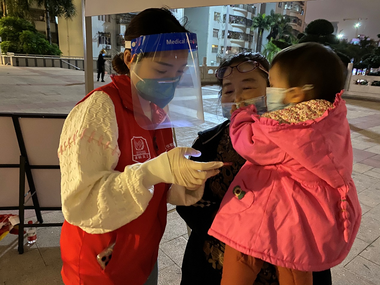 2月18日晚,寒風(fēng)瑟瑟的夜里,皇崗社區(qū)核酸采樣點(diǎn)還排著長龍。華夏銀行深圳分行的黨員、青年團(tuán)員迅速集結(jié)為“青年突擊隊”,在做好安全防護(hù)的基礎(chǔ)上,深入福田街道皇崗文化廣場、高發(fā)城馳廣場核酸采集點(diǎn),協(xié)助防疫工作組維護(hù)現(xiàn)場秩序、身份信息登記等志愿服務(wù)工作,幫助社區(qū)提升核酸檢測效率。高新支行儲雨欣耐心地指導(dǎo)一位抱著小孩的阿姨錄入核酸檢測信息,她趕到核酸采樣點(diǎn)已經(jīng)接近晚上8點(diǎn)?!皠倓倧闹熊堎~下班,雖然有些晚了,但我還是想來?!?/p>