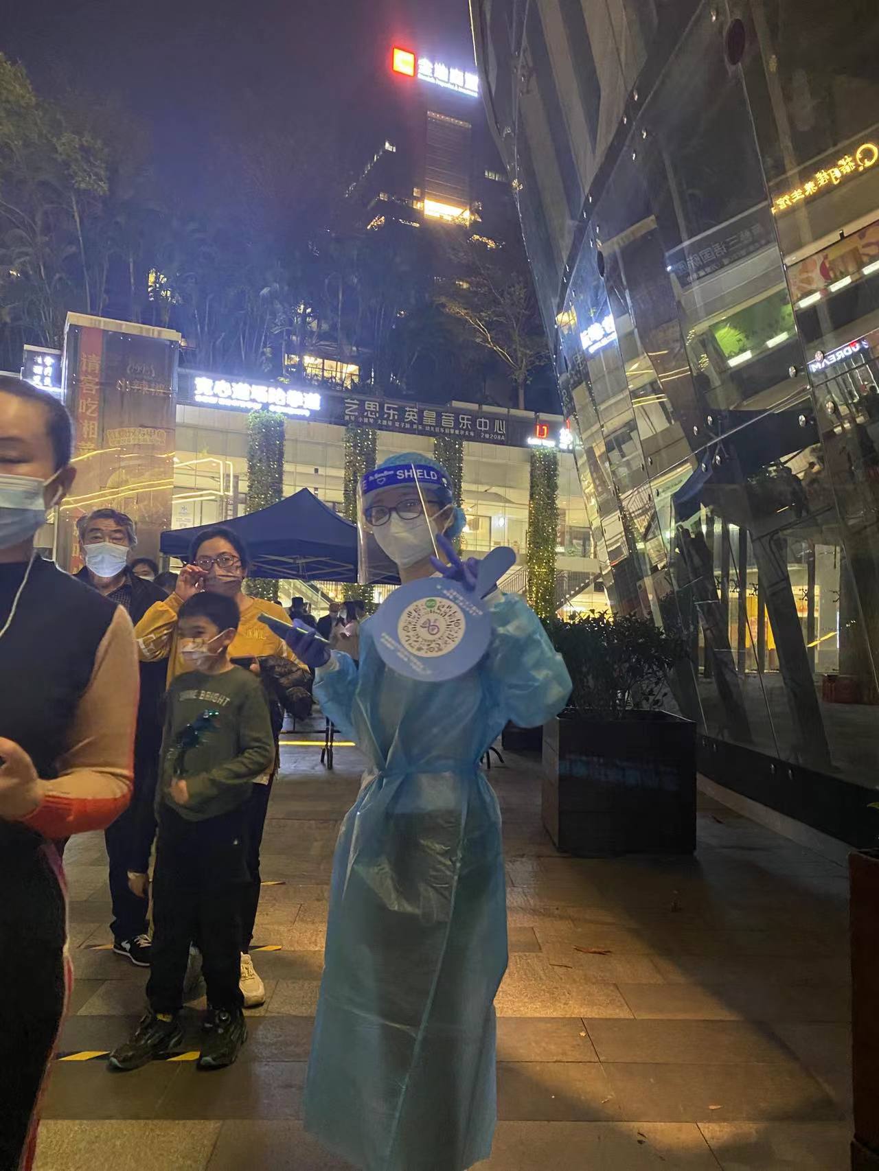 面對本輪疫情的來勢洶洶,新增病例的數(shù)字每天都在持續(xù)增加,許多小區(qū)開始封閉管理。在管控小區(qū)檢測點(diǎn)志愿者奇缺的狀況下,華夏銀行深圳蛇口支行的李宇航迅速報名成為社區(qū)義工。很快,他就穿著防護(hù)服,在封閉式管理的小區(qū)內(nèi)幫助核酸檢測秩序維護(hù)、指導(dǎo)粵核酸操作。他還主動承擔(dān)檢測物資運(yùn)送的工作,小朋友們總是跑到圍欄外喊他“大白”。他背對著孩子們,自豪地說:“我是華夏小李!”